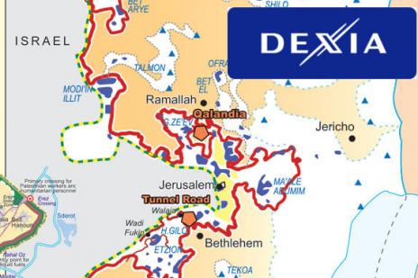 En 2001, le groupe Dexia (Dexia SA) prend le contrôle de la banque israélienne Otzar Hashilton Hamekomi. Il est avéré que cette filiale - Dexia Israël - finance des colonies dans les territoires occupés palestiniens [1] Ce qui fait du groupe Dexia une entreprise commerciale impliquée dans l’occupation de la Palestine. Comme le déclare la plateforme « Palestine occupée – Dexia impliquée », « le financement de ces colonies viole le droit international, en particulier la quatrième Convention de Genève dont l’article 49 stipule que : « la Puissance occupante ne pourra procéder à la déportation ou au transfert d’une partie de sa propre population civile dans le territoire occupé par elle. » [2]