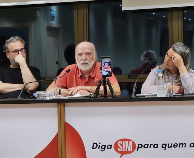 L’historien belge Eric Toussaint (au centre) s’exprimant lors de la réunion préparatoire à Porto Alegre. Photo : movimentorevista.com.br