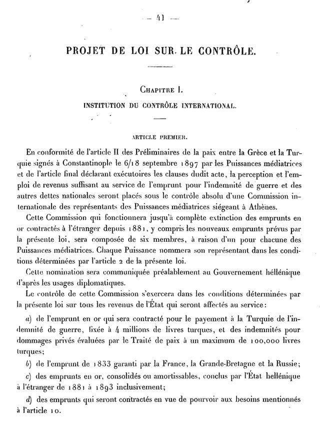[17] Acuerdo financiero con Grecia, trabajos de la Comisión internacional encargada de la preparación del proyecto/Ministerio de Relaciones Exteriores, París, 1898, p. 33.